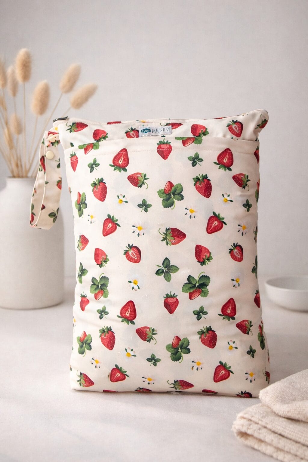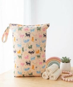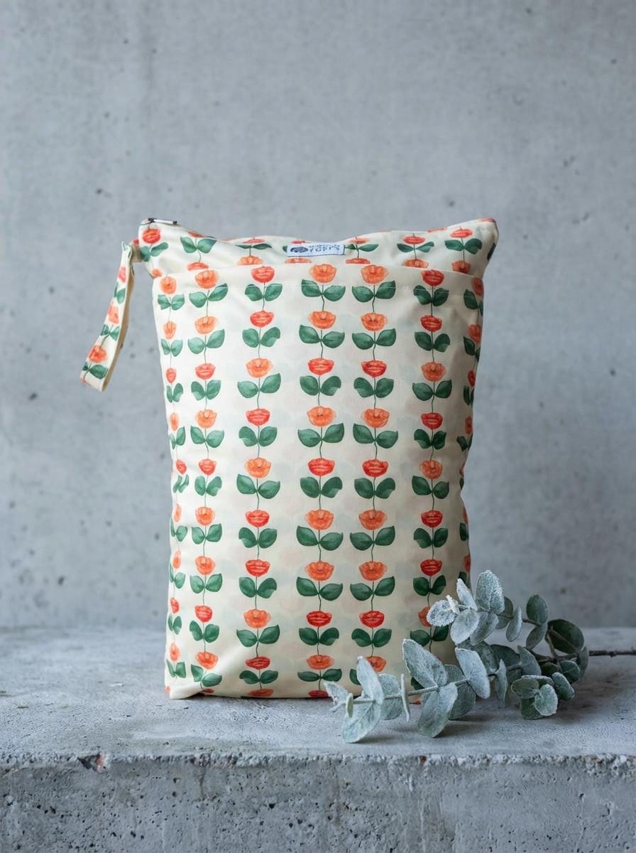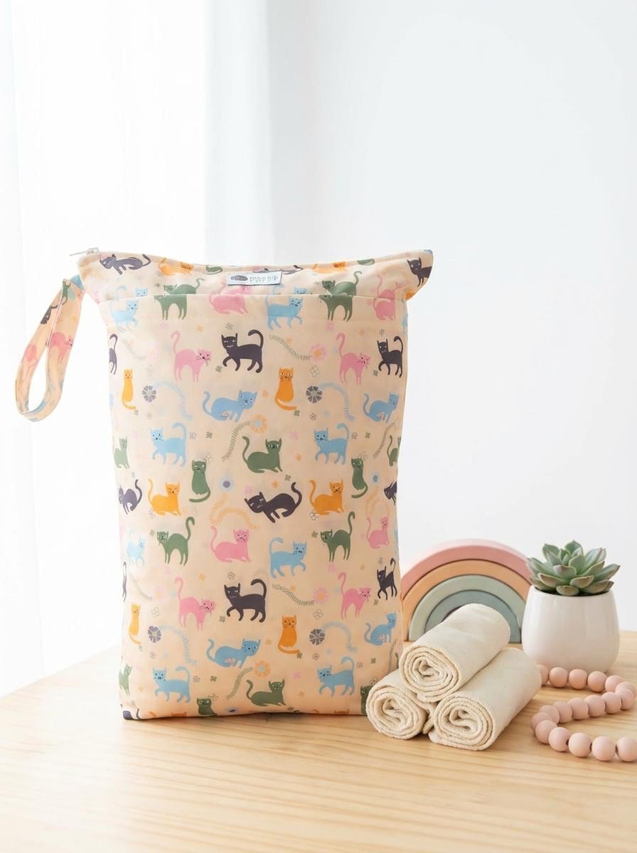 En rymlig och praktisk stor, hållbar påse för blöjor och andra blöta saker, en så kallad wet bag. Användningsområdena är oändliga! Okej, kanske inte oändliga, men det finns väldigt många användningsområden. Självklart är påsen perfekt till att förvara smutsiga blöjor i inför tvätt, men man kan även förvara renda blöjor i påsen. En pul-påse är dessutom ett bra verktyg att ha i skötväskan, då man kan packa rena blöjor och tvättlappar i ett fack och sedan vid blöjbyte på språng så lägger man den smutsiga blöjan och tvättlapparna i det andra facket! Perfekt! Har vi sagt perfekt många gånger nu? Det är för att den är det – perfekt.